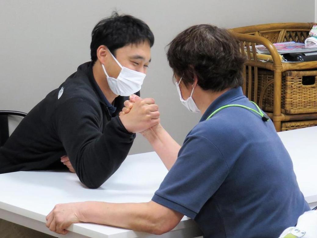 リハビリの成果です!力いっぱい引っ張れ!