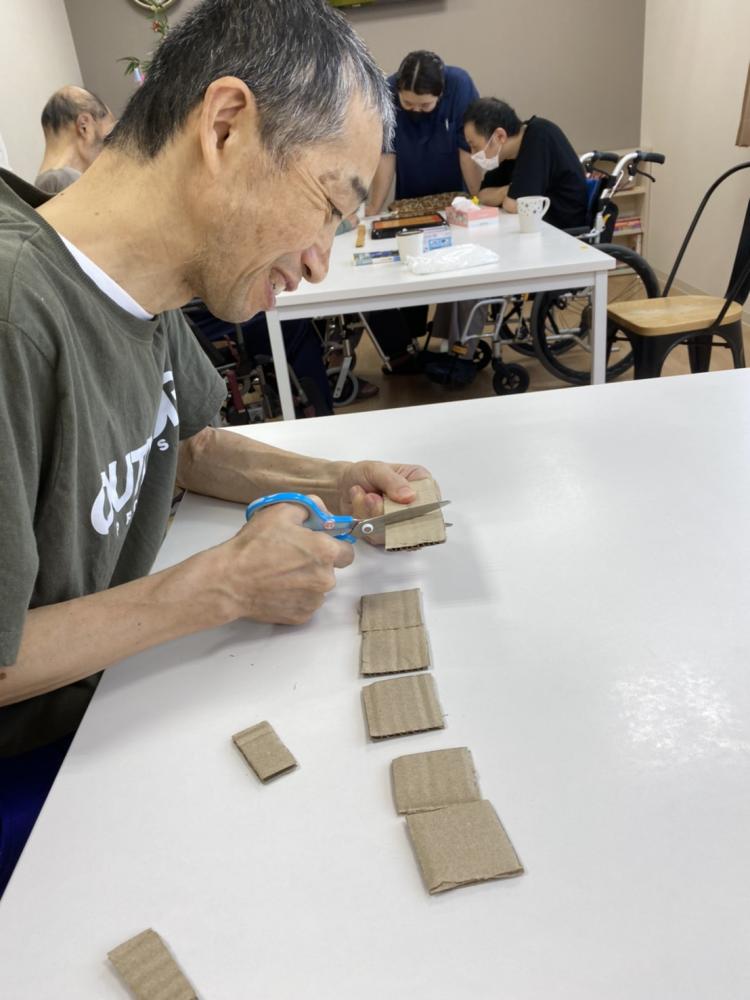 利用者さんに協力してもらい、段ボールとフェルトで大きな将棋盤&駒も作ってみました。